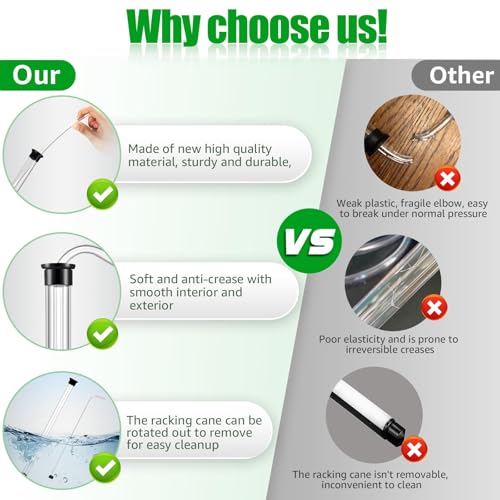 【Anti-break Elbow & Easy Setup Hose without Leakage】The upgraded plastic material of wine siphon will not dissolve in beer and will not produce bad tastes. The elbow of racking cane is pretty hard and will not break under normal pressure. The brewing silicone outer hose is soft, elastic and damage resistant, spring back without creases even if folded or collapsed. The built-in good sealing gasket will not produce any leaks, brewing transferring rate can be increased by 50%!