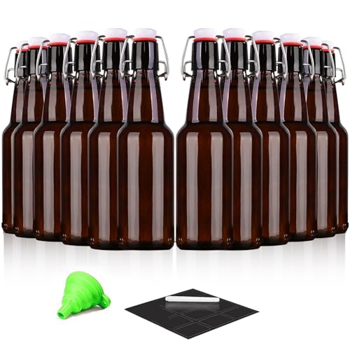 Amber Beer Bottles with Flip Caps, 12oz Glass Bottle with Swinging Top for Airtight Lids, Home Brewing and Fermentation Kombucha, Vanilla Extract, Beverage, Water, Kefir (12 Pack)