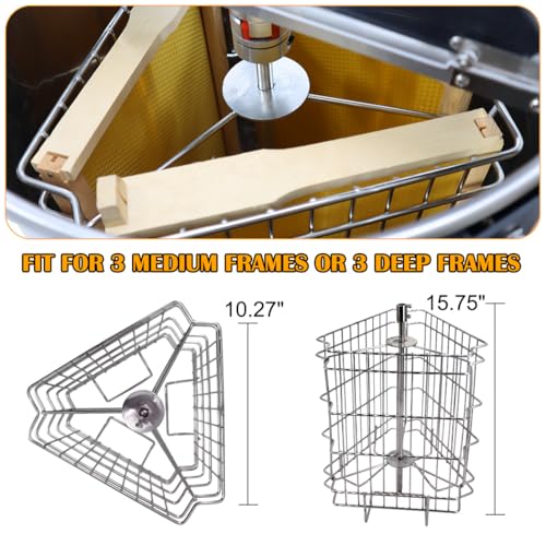Honey Lake 3 Frame Electric Honey Extractor – Stainless Steel Drum, Adjustable Speed & Height, 140W Quiet Motor, Transparent Lid, Honey Spinner for Beekeeping Harvest