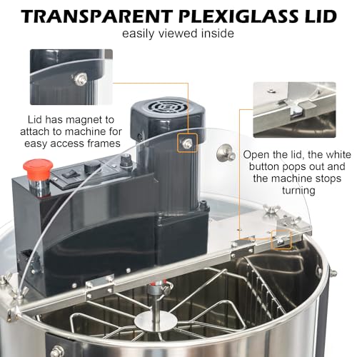 Easy to Use & Clean – Just press the switch to spin. Transparent plexiglass lid lets you watch the process safely. No honey leakage