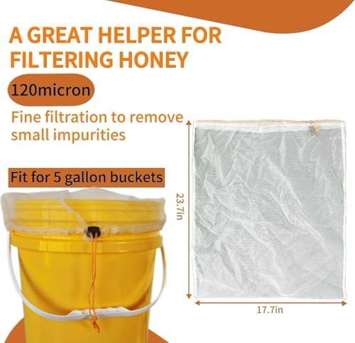 Fits your Needs: 5 Gallon Bucket Mesh Filter help remove wax, pollen, and other impurities or particles to produce a clearer, purer-tasting honey. There are 4 mesh bags in the package.