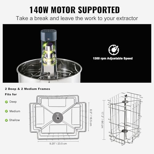 More Time to Relax: Get ready to enjoy an effortless and efficient honey extraction with our powerful 140W extractor! Say goodbye to manual hand cranking. With an adjustable speed of up to 1300 rpm, this bee honey extractor will make quick work of your frames, saving your arms and back from exhaustion. Simply load your frames and let this electric honey extractor do the heavy lifting for you.