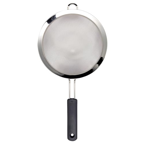 The OXO Good Grips 8-in/20 cm Fine Mesh Strainer is great for draining excess liquid from just about any food, including fruit, vegetables, grains, beans and pasta. A wide stainless steel rim and balancing loop help secure the Strainer on almost any bowl or pot, and the double-rod construction stands up over time. The comfortable grip won’t slip, even when wet. Dishwasher safe. Also available in 6-inch and 3-inch sizes.