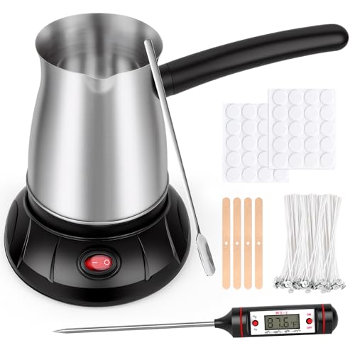 【Candle Making Kit with Pot】We provide a variety of accessories to assist beginners in making perfect candles, including 600ml Stainless Steel Candle Pouring Pot x1, 50PCS Wicks, 40PCS Wick Stickers, 4PCS Wick Centering Device, 1 x Stirring Spoon and 1 x manual.Not only is it bigger than most candle wax melters, it helps you make more candles at once, making it ideal for DIY candle lovers!