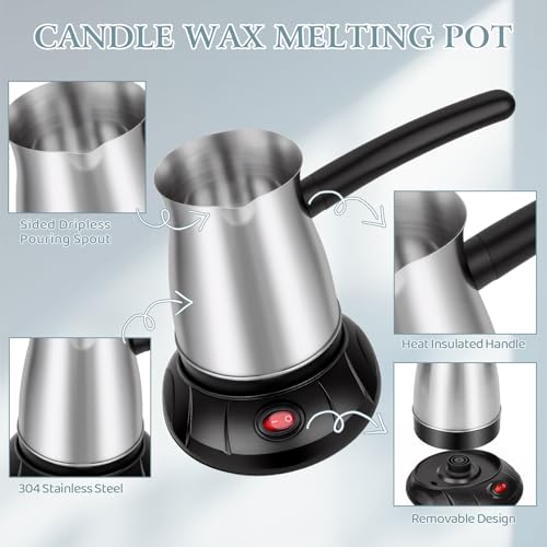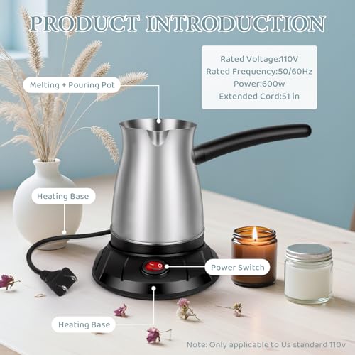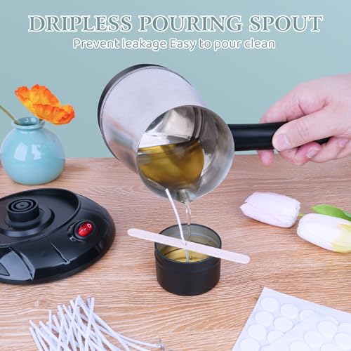 【Candle Making Supplies】This candle making pouring pot can hold 600ml of molten wax. This wax melting pot and Stirring Spoon is made of high quality 304 stainless steel , with strong Anti-rust which is easy to clean.There is no dripping at the pouring mouth, which controls the flow and prevents leakage. And candle making pot can be removed from the base for easy wax pouring, wherever you need.